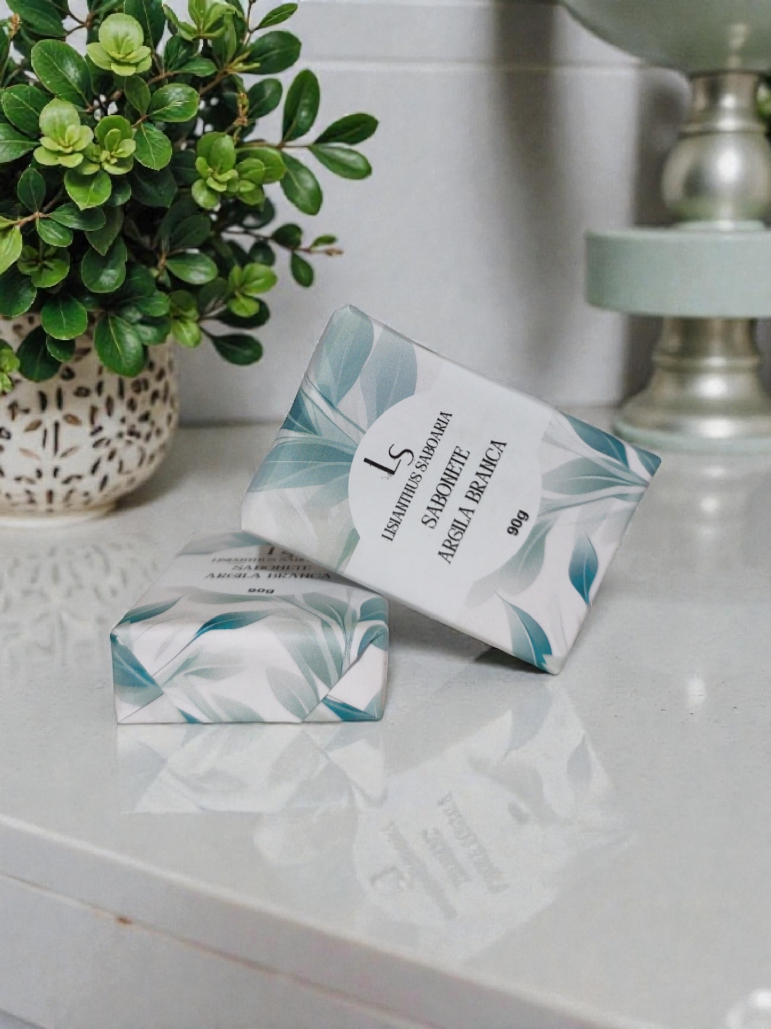 Função: O sabonete de argila branca tem a função de clarear, absorver a oleosidade sem desidratar, suavizar e cicatrizar. É indicado para peles sensíveis.